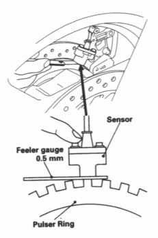 - Turn the front wheel so one of the poles of the pulser ring and sensor face each other.